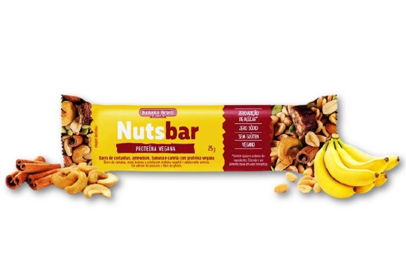 Nuts Bar Proteína Vegana da Banana Brasil é uma barrinha, que além de saborosa é muito nutritiva, as barras de cereais são uma ótima opção para quem enfrenta a correria do dia a dia e quer aproveitar os vários benefícios das fibras, como a redução do colesterol, a melhora do trânsito intestinal, etc. Até mesmo pessoas que estão em dieta para redução de peso as consomem, a fim de terem à saciedade aumentada, já que as barras podem satisfazer a vontade de comer doce, sem colocar a dieta em risco por serem bem menos calóricas.
