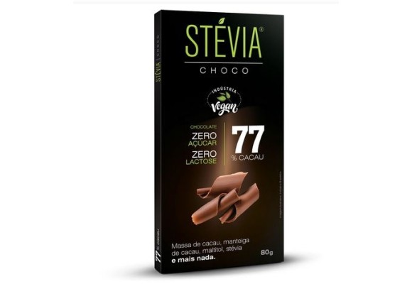 CHOCOLATE AMARGO 77% CACAU COM STÉVIA - STÉVIACHOCO