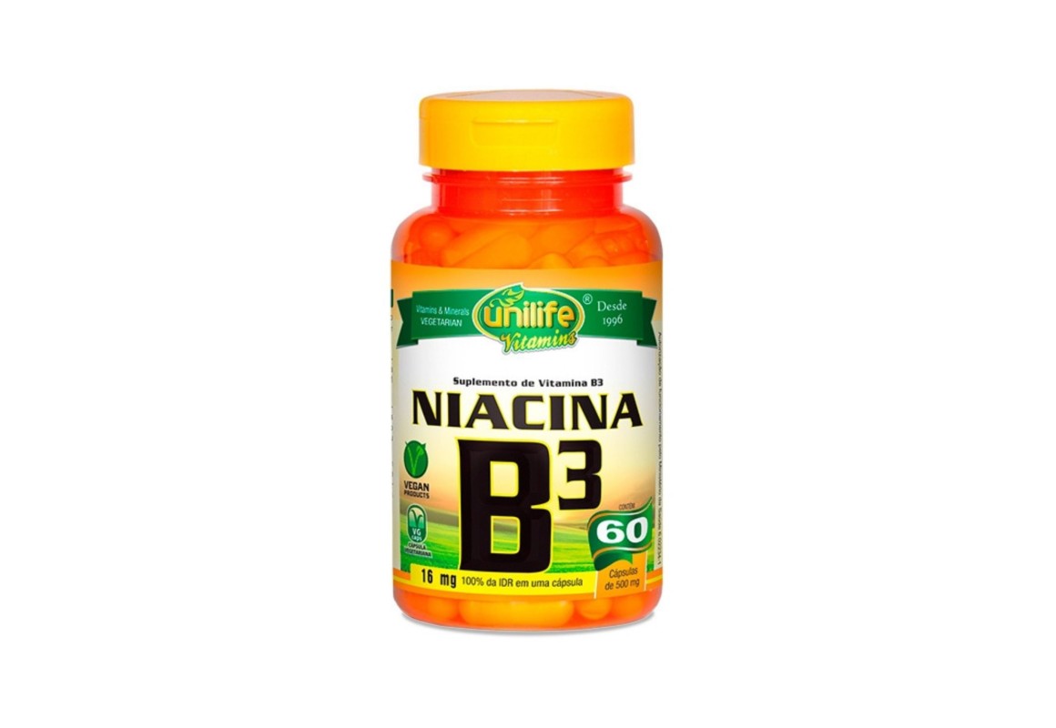Cada cápsula contém 16 mg de Vitamina B3.