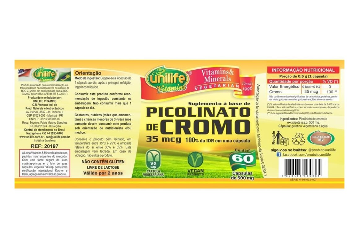 Picolinato de cromo 35 mcg, excipiente q.s.p. 500mg.